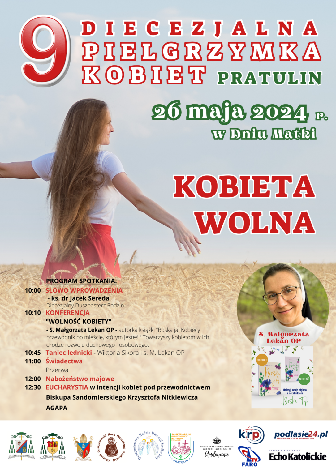 Czym jest prawdziwa wolność kobiety? Na czym ona polega we współczesnym świecie? Kiedy mogę powiedzieć, ze jestem wolna? Przez te zagadnienia poprowadzi nas zaproszony gość: siostra Małgorzata Lekan, dominikanka, która w swojej posłudze głosi konferencje, spotkania i warsztaty dla kobiet towarzysząc im w rozwoju duchowym i osobistym.