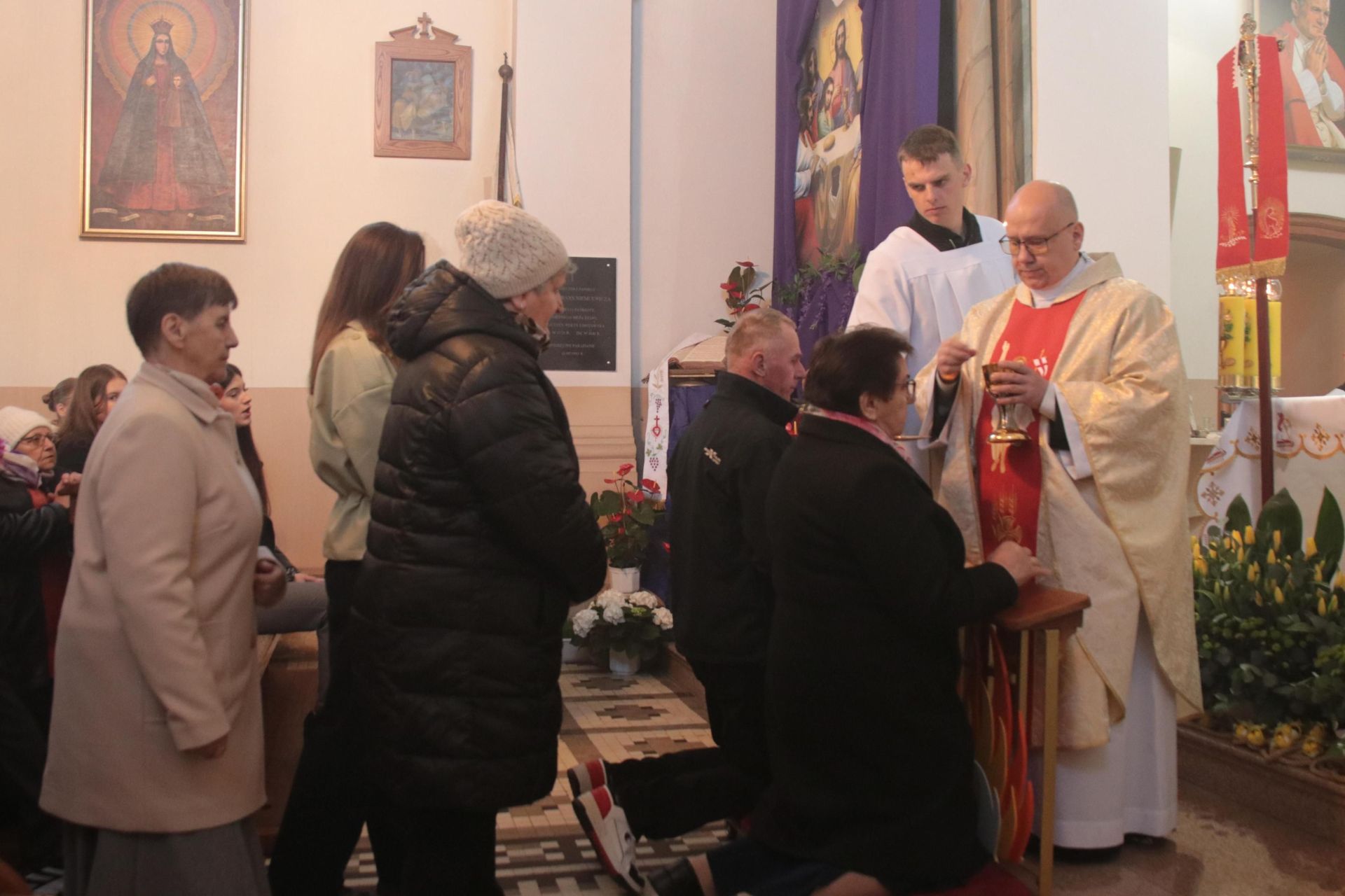 - Dziękuję Wszystkim osobom, które swoim głosem włączyły się w śpiew pieśni i psalmów, dziękuję organiście Pawłowi za grę i scholii parafialnej za śpiew, dziękuję za nocne czuwanie w dniu wczorajszym i bardzo serdecznie zapraszam zarówno do scholii i służby ołtarza.